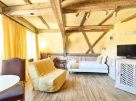 Chacune des 38 chambres et des 2 Suites de cette demeure patricienne de 1361 sont uniques, décorées avec chaleur et esthétisme. Deux chambres ont été rénovées dans un style plus moderne avec lavabo intégré dans les chambres, douche et WC séparés. Les autres chambres conservent une décoration typiquement alsacienne garantissant une ambiance feutrée et propice au repos.