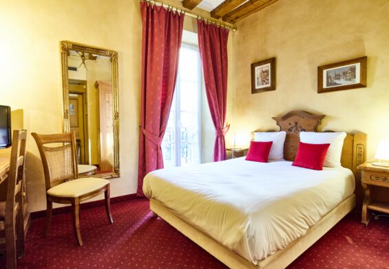 Each of the 38 rooms and 2 suites of this 1361 patrician residence are unique, decorated with warmth and aestheticism. Two rooms have been renovated in a more modern style with integrated washbasins in the rooms, separate shower and WC. The other rooms have been decorated in a typical Alsatian style, guaranteeing a cosy and relaxing atmosphere.