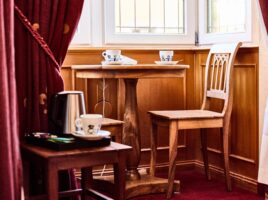 À votre arrivée dans la chambre, un plateau d'accueil vous sera offert contenant une bouilloire, des tasses, du thé et du café.